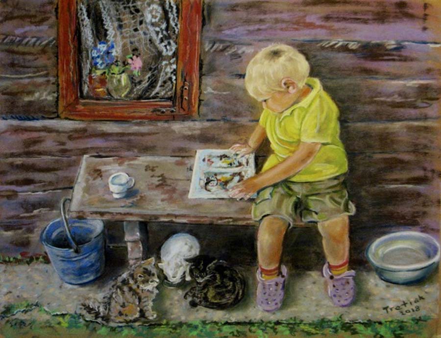 There were many images deserving an award and I struggled which ones to single out. They all have great design qualities. The image “Blue Jeans and Steel Beams” that I selected for the top award is a perfect example of what a good painting is about. It is all about shapes, great drawing and rendering skills on the figures, one figure being the focus and a great juxtaposition of organic versus man-made elements, well done! I awarded “Urban Colours” the second place as it has the most interesting shapes, dynamic brushstrokes and negative spaces. My 3rd choice for awards goes to “Tendresse”, a beautifully rendered piece with great negative shapes, focus and emotion. There were 5 honourable mentions but there were many more I could have picked. Again, they are all well done, display great drawing skills, wonderful application of the medium and in case of “Miles”, the dog, a “realness” to it that just jumps off the page.